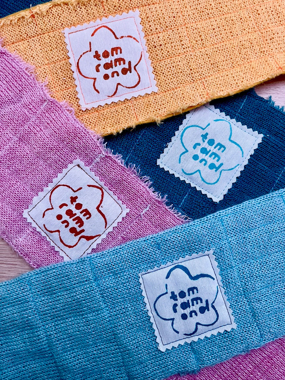 Bandeaux bicolores en laine tricotée et surpiquée, vendus au marché du Sample Bagnolet.