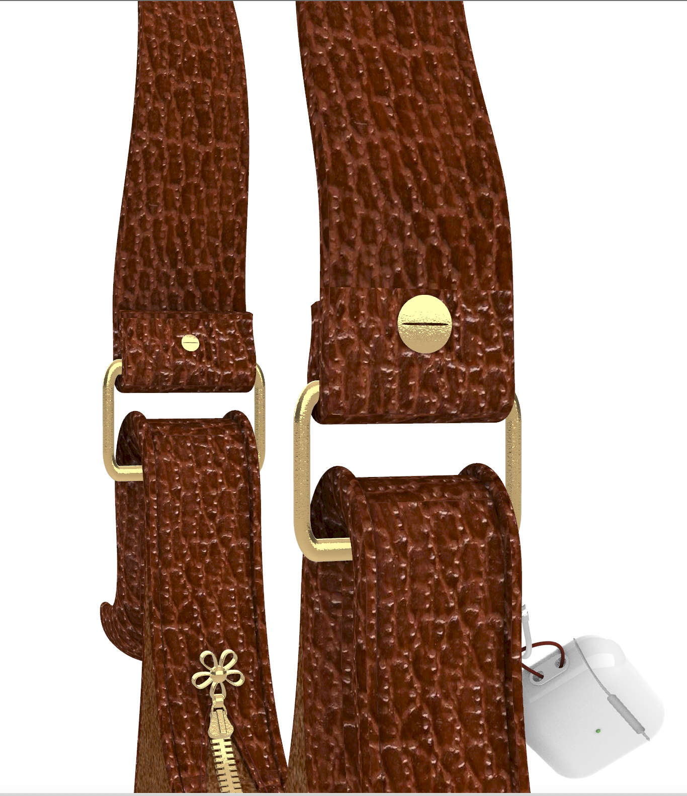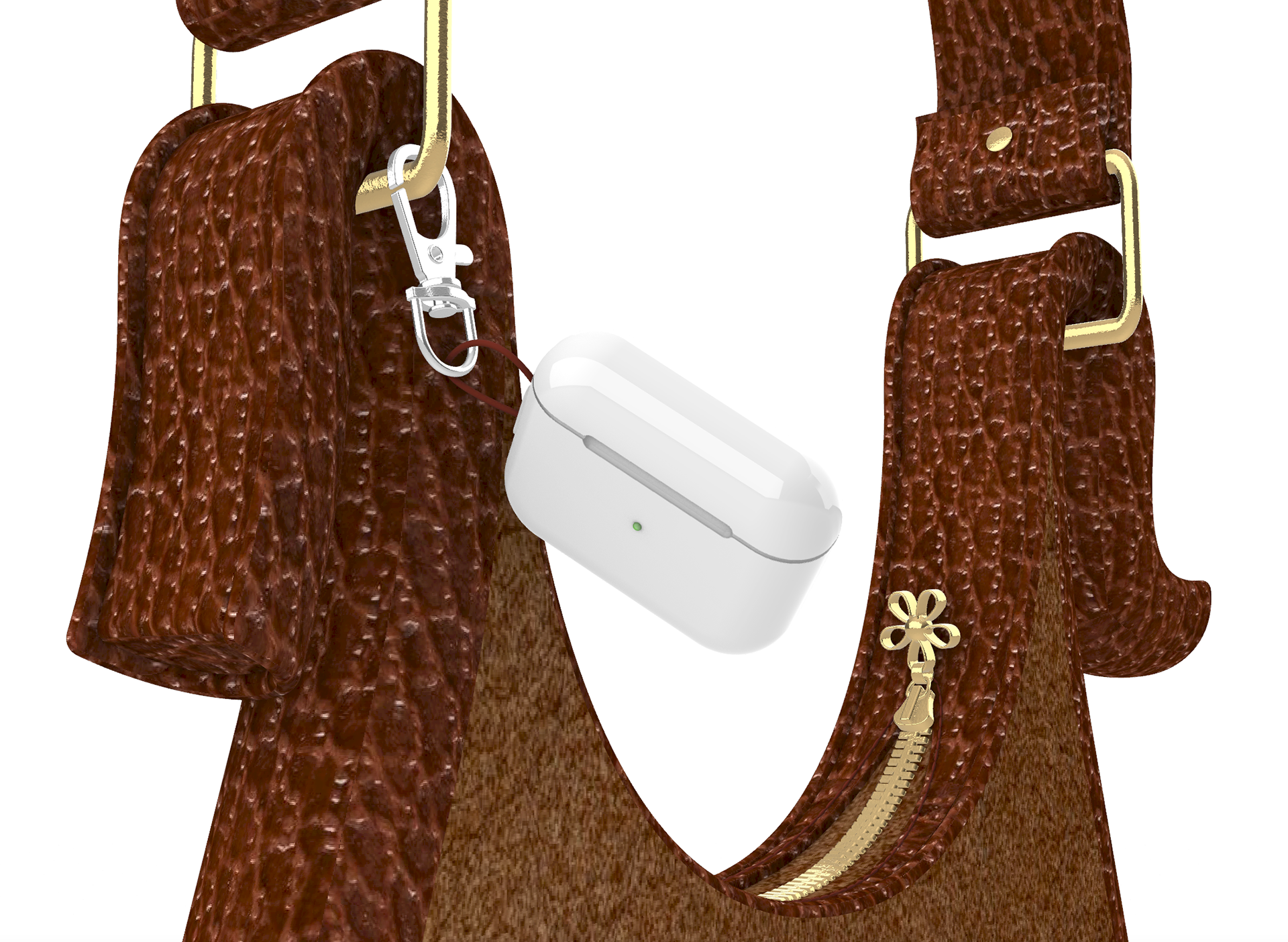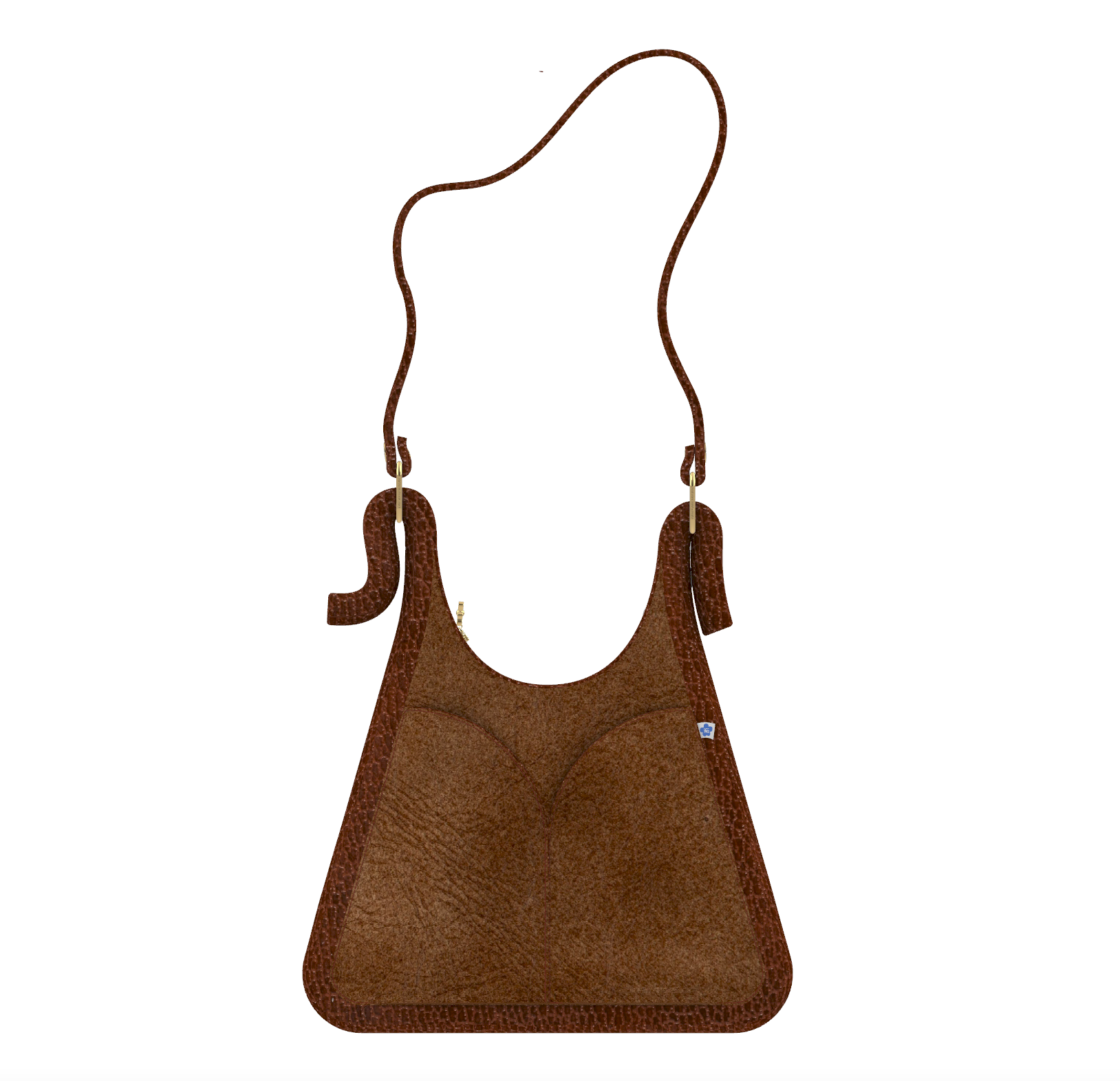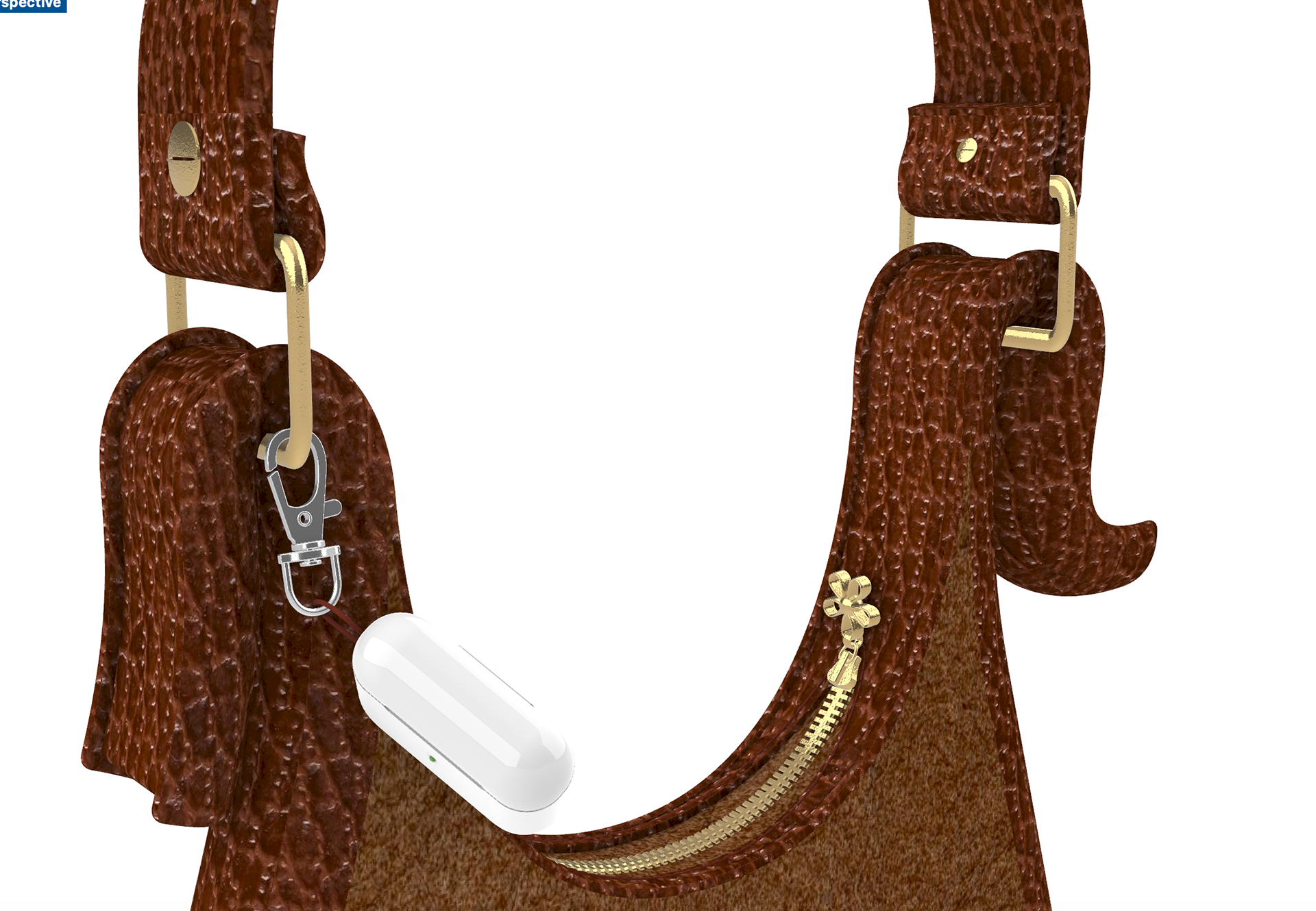 Modélisation 3D d'un sac à main en cuir avec fermeture éclair et poches.